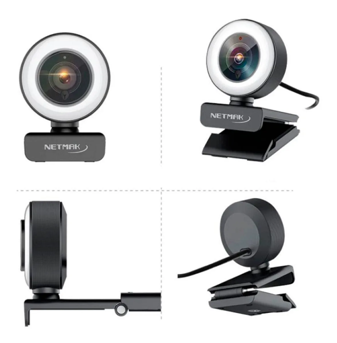 Webcam Netmak Web04 FHD 1080p USB c/ Micrófono Integrado + Aro Luz LED NM-WEB04